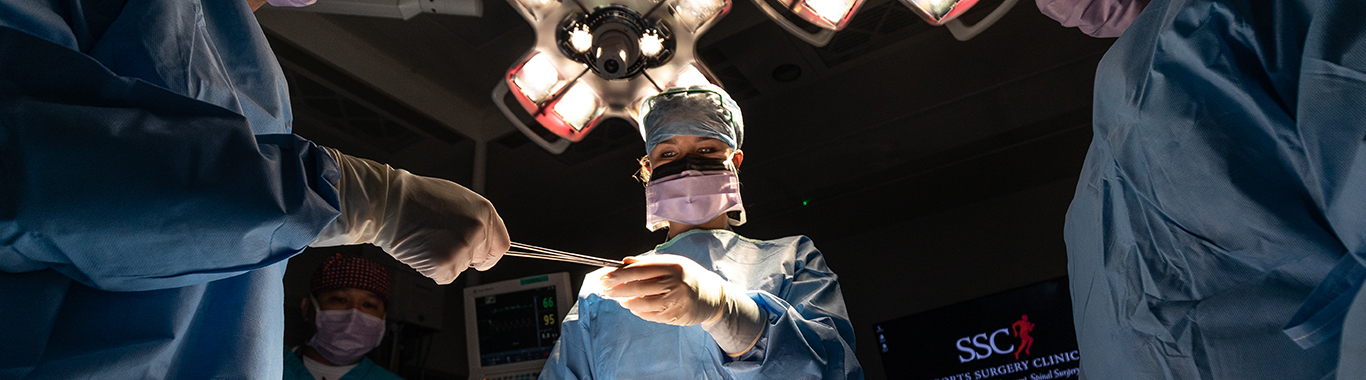 Everyone knows their role in surgery; it’s very much a team effort. Once the graft is prepared by Moran, it is inserted through an incision in the front of Collins’ knee. In the past silk, silver, wire, polyester and carbon fibre were used as a replacement for the cruciate, but now grafts from the hamstring or patellar tendons are most common.