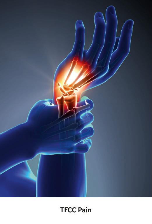 TFCC is a soft tissue structure that connects the two bones in the forearm, the radius and ulna, at the wrist. It stabilizes the wrist joint and shares the load going across the wrist. The TFCC may be injured in two ways: either by injury (traumatic tear) or by wear and tear over time (degenerative tear). Tears may be caused by a fall on the outstretched hand or sudden forceful rotation of the forearm such as when using a power drill. Sports at risk of causing these injuries included yoga, tennis, golf, and gymnastics.