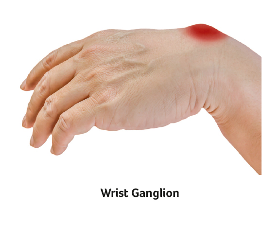 A wrist ganglion is a fluid filled sac that can occur on the back(dorsal) or front(volar) side of the wrist. The fluid inside is clear and thick. They are thought to occur due to changes in the capsule or lining of the joint and are not necessarily related to arthritis. The ganglion may arise from the wrist joint itself or through a ligament of the wrist. There may be other smaller “sister cysts” related to the original ganglion. Some cysts may be amenable to aspiration and removal of the fluid with a needle. Others or recurrent ganglia are treated with surgical excision.